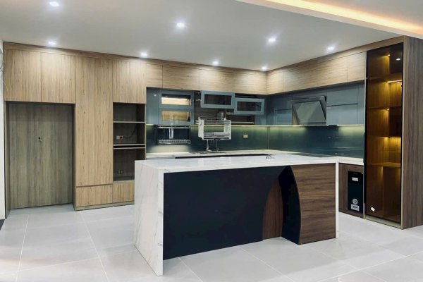 Không gian bếp hiện đại với chất liệu MDF chống ẩm An Cường kết hợp Thái Lan cao cấp , mang đến vẻ đẹp trong trẻo – sang trọng – bền màu vượt trội theo thời gian.